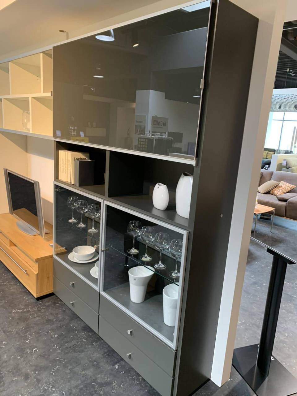 Wohnwand schrankwand anbauwand fun plus 1 grau holz beleuchtung.