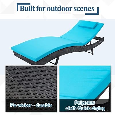 Foldable wicker rattan patio chaise lounge chair with 5 back positions turquoise cushion (set of 2) add fresh modern leisure to your backyard.