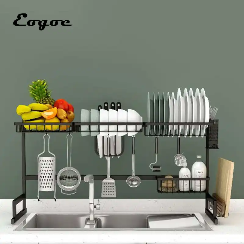 Over the sink dish drying rack stainless steel kitchen cutlery holder shelf yt.