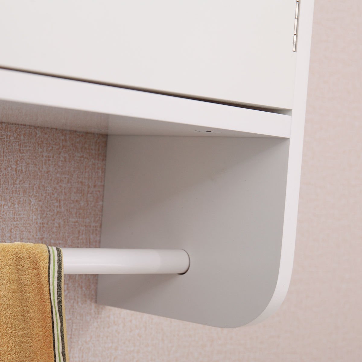 This bathroom wall cabinet will keep your extra linens and toiletries tucked away with two interior shelves. This storage cabinet is a perfect storage solution for your home, office or hotels. Costway wall mounted bathroom medicine cabinet storage cupboard w/ towel bar. Costway wall mounted bathroom medicine cabinet storage cupboard w/ towel bar. The wall cabinet is designed to hang on the wall, which saves floor space.